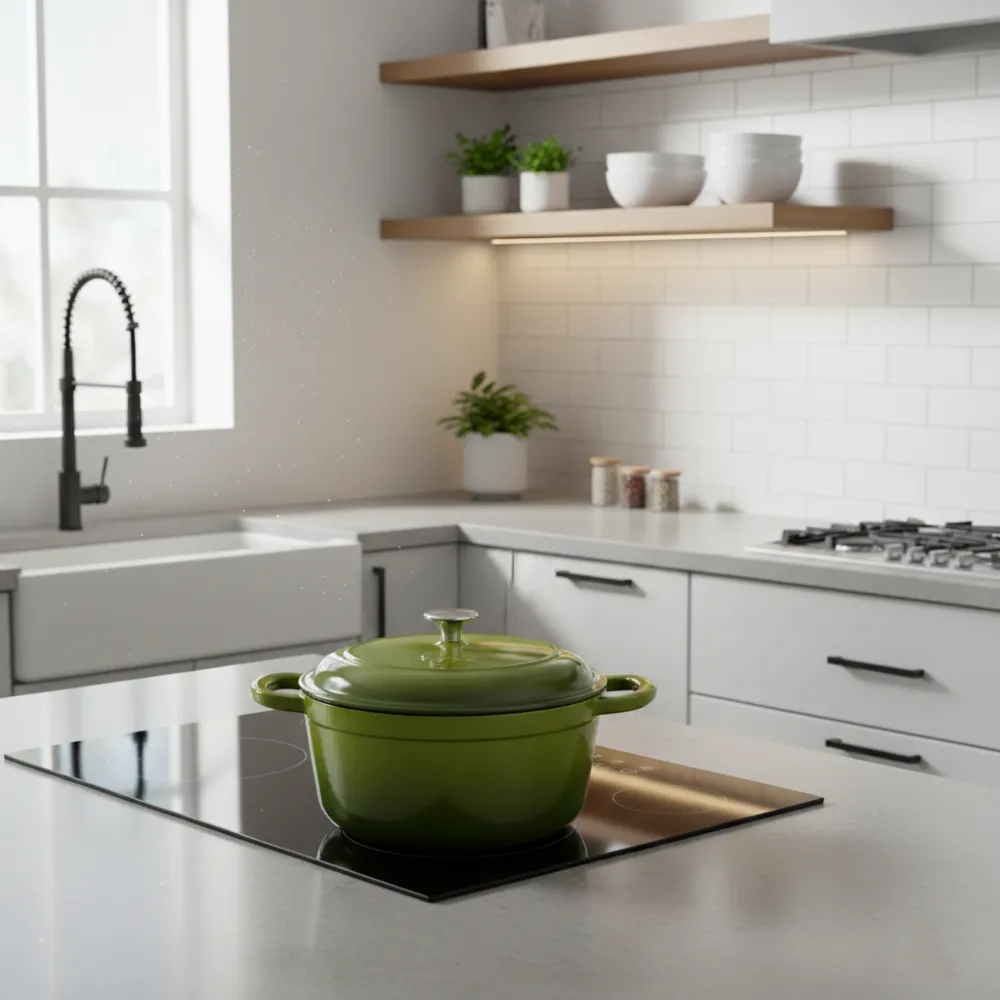 Fonta groasă distribuie căldura uniform și o menține constantă, astfel încât preparatele se gătesc liniștit, fără variații bruște de temperatură. Nu este nevoie de amestec continuu, iar riscul de lipire este redus atunci când gătitul se face corect.